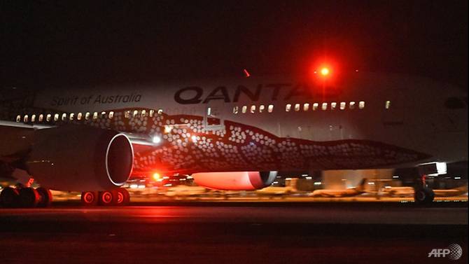 Chiếc máy bay của hãng hàng không Qantas cất cánh trong chuyến bay đầu tiên từ Perth đến London ngày 24/3. Ảnh: AFP