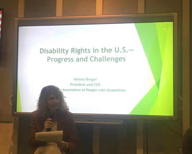 Ngày 31/8, Đại sứ quán Mỹ đã tổ chức buổi thảo luận về Quyền của người khuyết tật với diễn giả người Mỹ Helena Berger. Bà Berger là luật sư hoạt động trong lĩnh vực quyền của người khuyết tật trong 30 năm nay. Bà hiện là Chủ tịch kiêm giám đốc điều hành của Hội Người khuyết tật Mỹ (AAPD).