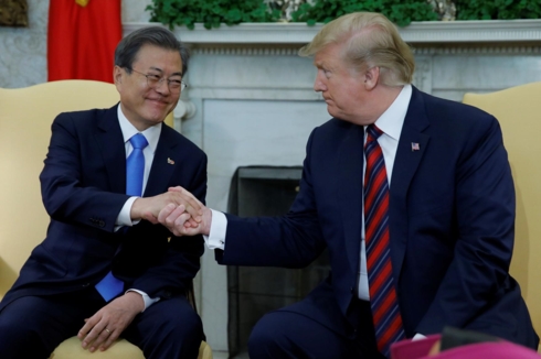 Tổng thống Hàn Quốc Moon Jae In và Tổng thống Mỹ Donald Trump. Ảnh: Reuters