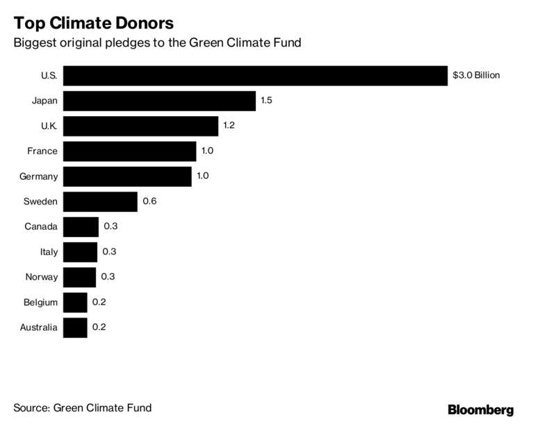 Danh sách các nước dẫn đầu về cam kết tài trợ cho quỹ chống biến đối khí hậu. Nguồn: Bloomberg