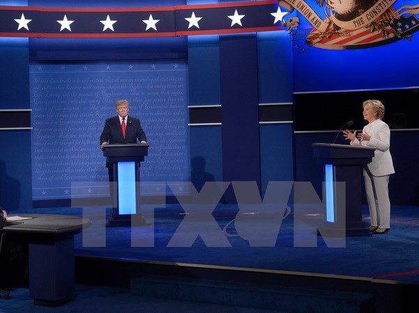 Hai ứng cử viên bước vào cuộc tranh luận trực tiếp cuối cùng. (Nguồn: AFP/TTXVN)