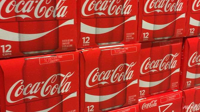 Sản phẩm của Coca-Cola trên một kệ hàng tạp hóa tại Gainesville, Virginia, Mỹ. Ảnh: AFP