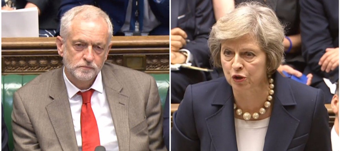 Thủ tướng Anh Theresa May (phải) và Chủ tịch Công đảng đối lập Jeremy Corbyn. Nguồn: AFP