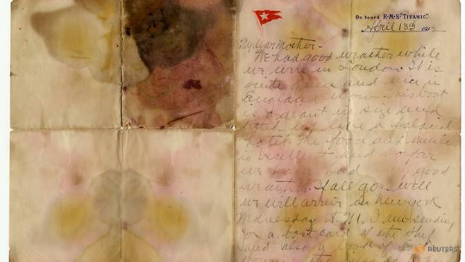 Bức thư cuối cùng được viết vào ngày 13/4/1912 bởi hành khách Alexander Oskar Holverson, nạn nhân của vụ chìm tàu Titanic lịch sử. Ảnh: CNA