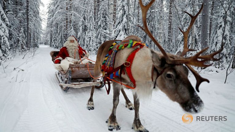 Santa Claus cưỡi chiếc xe trượt tuyết chuẩn bị cho Giáng sinh gần thành phố Rovaniemi, tỉnh Lapland, Phần Lan hôm 15/12. Ảnh: Reuters