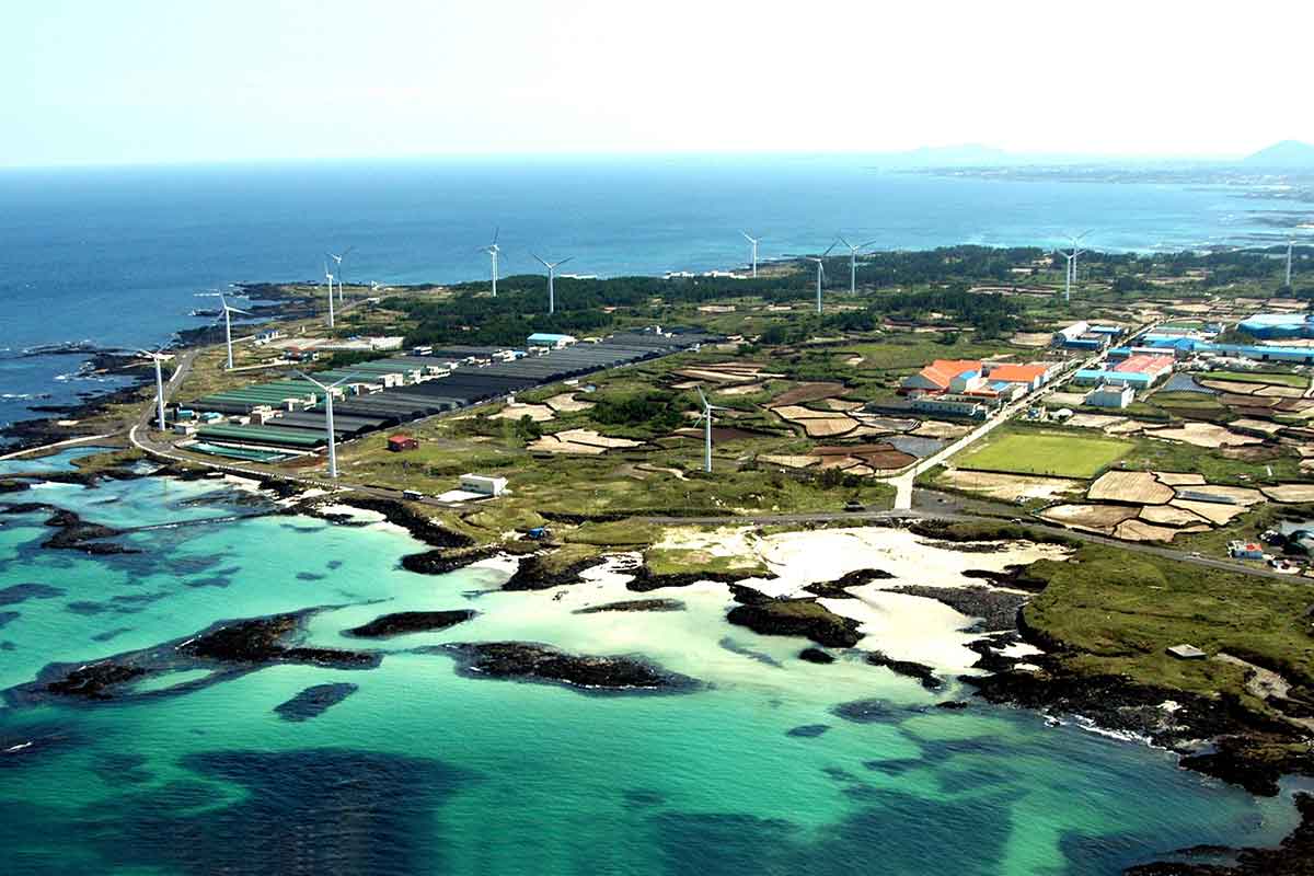 Một khu nhà máy điện gió trên đảo Jeju, Hàn Quốc. Ảnh: AFP