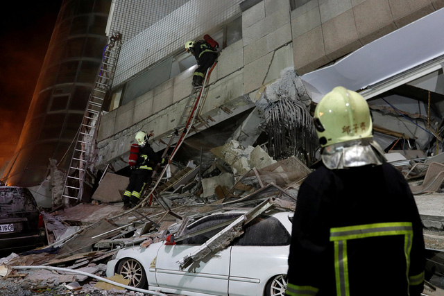 Lực lượng cứu hộ Đài Loan đang khẩn trương tìm kiếm nạn nhân mắc kẹt tại Hoa Liên ngày 7/2. Ảnh: REUTERS