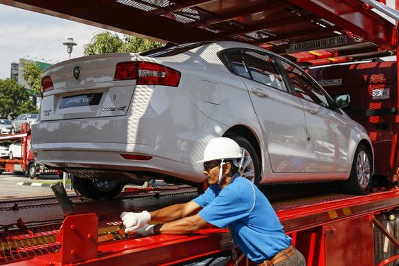 Một công nhân ở Kuala Lumpur chuẩn bị các công tác cuối cùng để vận chuyển xuất khẩu xe ôtô. Ảnh: Nikkei News
