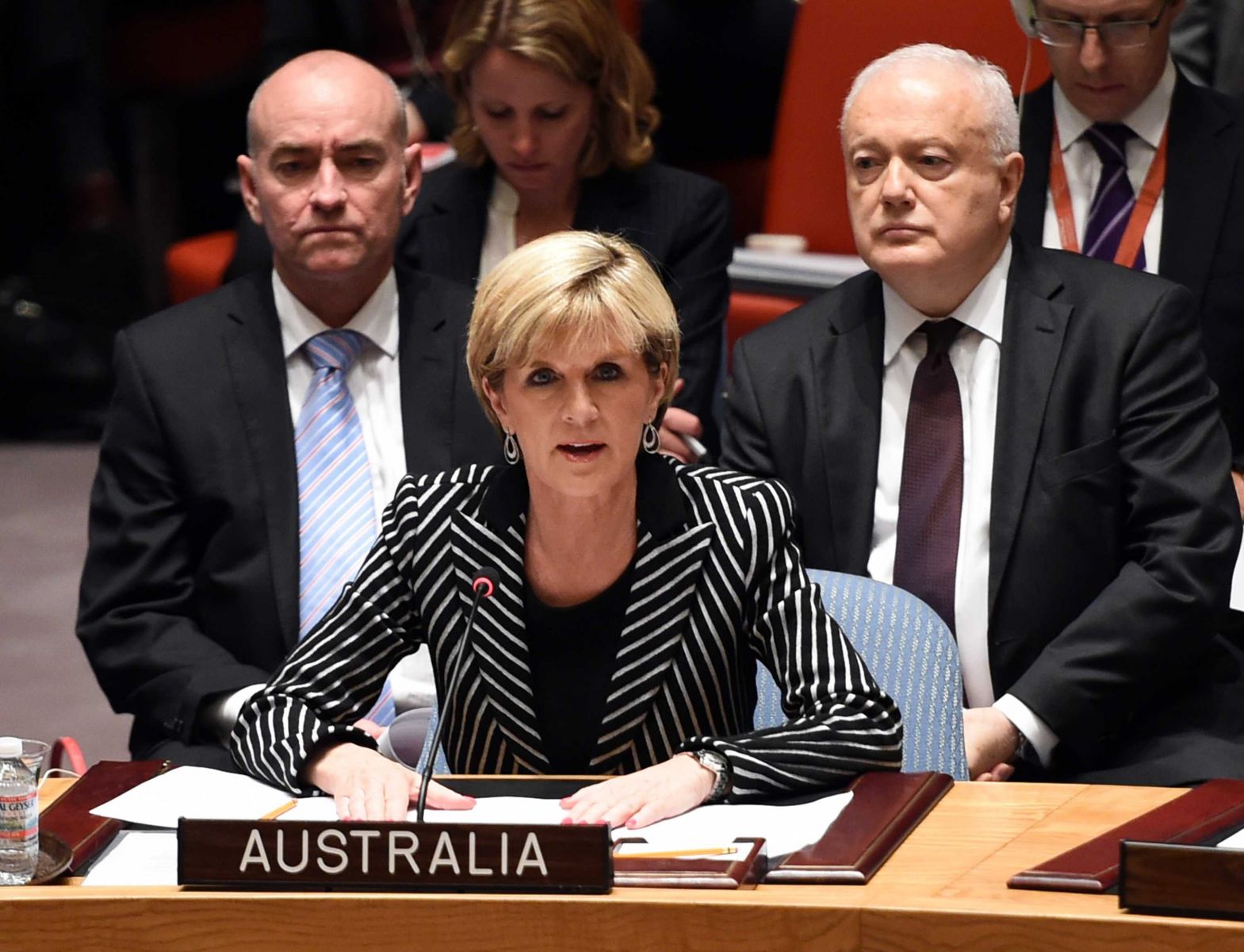 Ngoại trưởng Úc Julie Bishop (giữa) khẳng định lập trường nước này cho rằng tự do đi lại trên Biển Đông là vấn đề cần được bảo vệ - Ảnh: Theage
