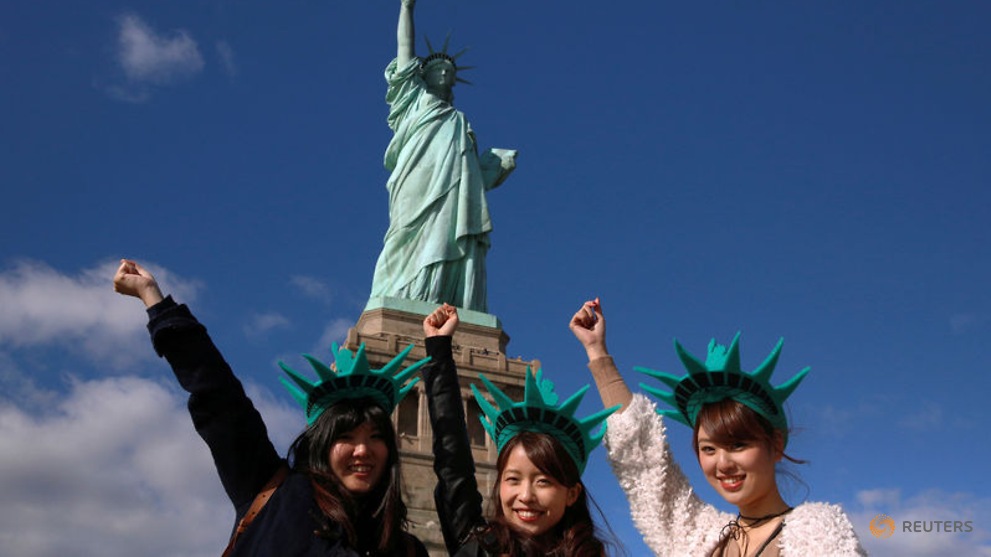 Du khách chụp ảnh tại New York City, Mỹ. Ảnh: Reuters