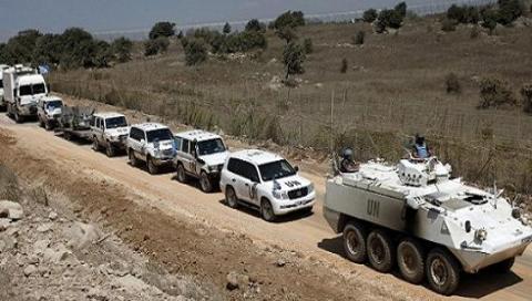 Đoàn xe của Liên Hợp Quốc di chuyển trên lãnh thổ Syria, ở khu vực cao nguyên Golan. Ảnh: Internet.