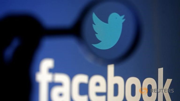 Biểu tượng của Twitter (phía trên) và logo của Facebook. Ảnh: Reuters