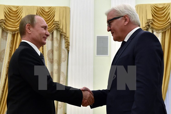 Tổng thống Nga Vladimir Putin tiếp Ngoại trưởng Đức Frank-Walter Steinmeier. (Nguồn: AFP/TTXVN)