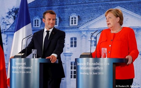 Phát biểu trước báo giới sau cuộc họp Hội đồng Bộ trưởng Đức-Pháp tại lâu đài Meseberg ở phía Bắc thủ đô Berlin của Đức chiều 19/6, Thủ tướng Đức Angela Merkel và Tổng thống Pháp Emmanuel Macron cho biết, hai bên đã tìm được tiếng nói chung trong một loạt các vấn đề quan trọng của Liên minh châu Âu.