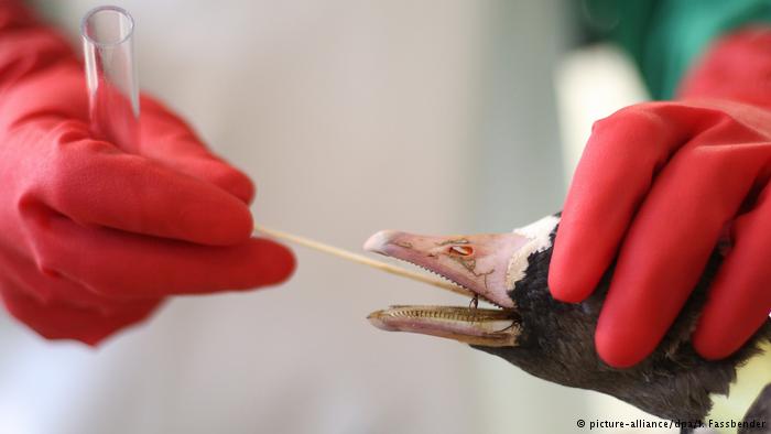 Nhân viên phòng thí nghiệm ở bang North Rhine Westfalia, Đức kiểm tra một con ngỗng nghi ngờ nhiễm cúm gia cầm. Ảnh: DW