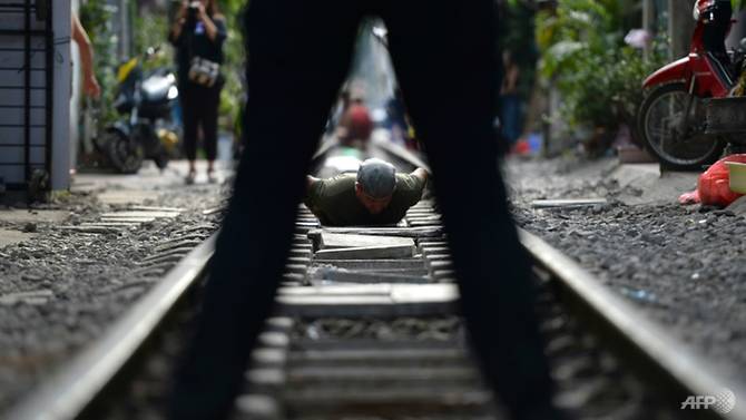 Đoạn đường sắt cũ ở trung tâm Hà Nội là một điểm thu hút thực sự đối với du khách. Ảnh: AFP