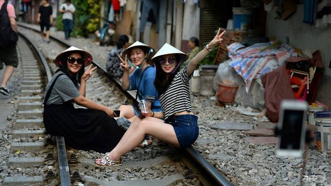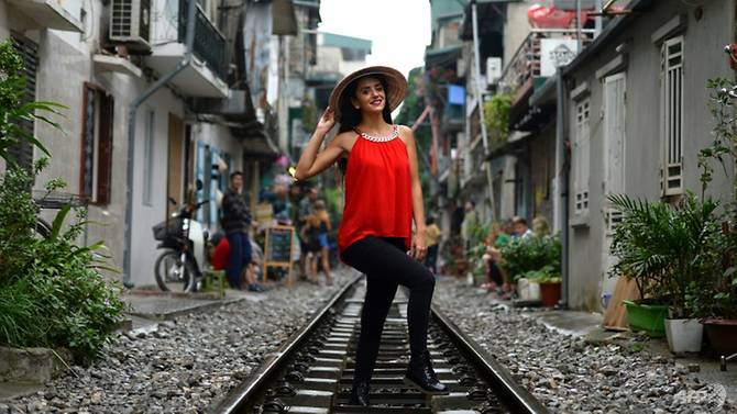 HNN.VN - Đoạn đường sắt ở trung tâm khu phố cổ nhộn nhịp của thủ đô Hà Nội đang trở thành điểm nóng đối với du khách tìm kiếm những bức ảnh chụp "tự sướng" hoàn hảo, hãng thông tấn AFP ngày 26/10 cho hay.