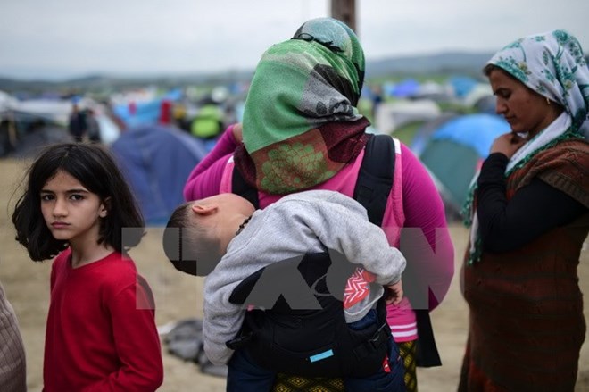 Người tị nạn và di cư bị mắc kẹt tại khu vực biên giới Hy Lạp-Macedonia. (Nguồn: AFP/TTXVN)