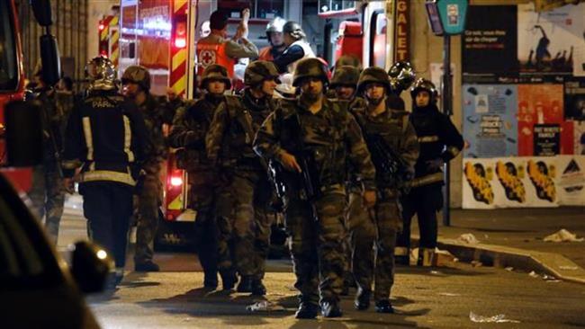 Lực lượng an ninh trong một khu vực bị tấn công khủng bố ở Paris, Pháp tháng 11/2015. Ảnh: AFP