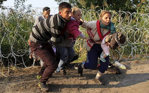 Người Syria luồn dây thép gai vượt biên vào châu Âu. Ảnh: Reuters.