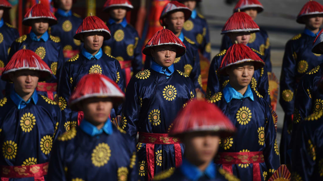 Hơn 100 nghệ sĩ sẽ mặc trang phục như Hoàng đế nhà Thanh và các lính triều đình tham gia buổi biểu diễn tại lễ hội cổ ở Đền Trái đất, Công viên Ditan, thủ đô Bắc Kinh trong Lễ hội mùa xuân.