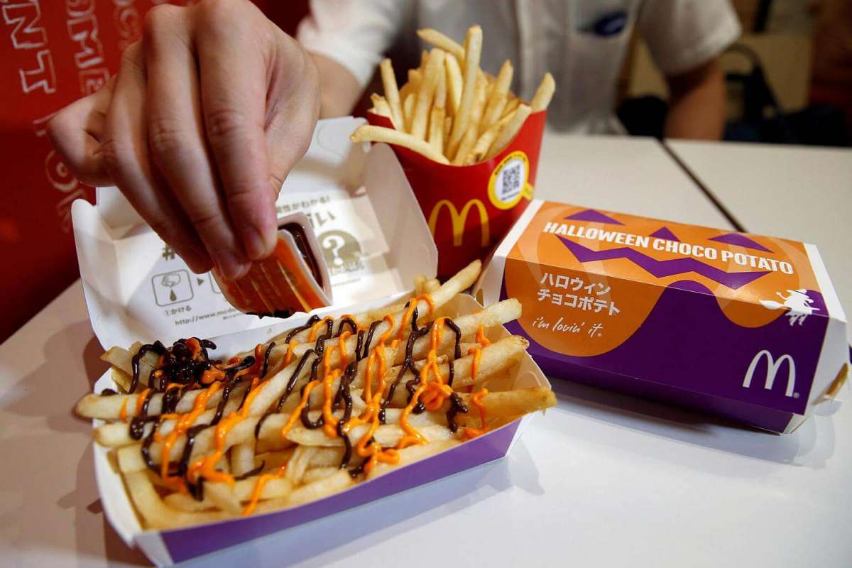 | "Halloween Choco Fries - Pumpkin & Choco Sauce", món khoai tây chiên ăn kèm với sốt bí đỏ và sô cô la tại một chi nhánh của Tập đoàn đồ ăn nhanh hàng đầu thế giới McDonald's ở thủ đô Tokyo, Nhật Bản. Ảnh: Reuters |