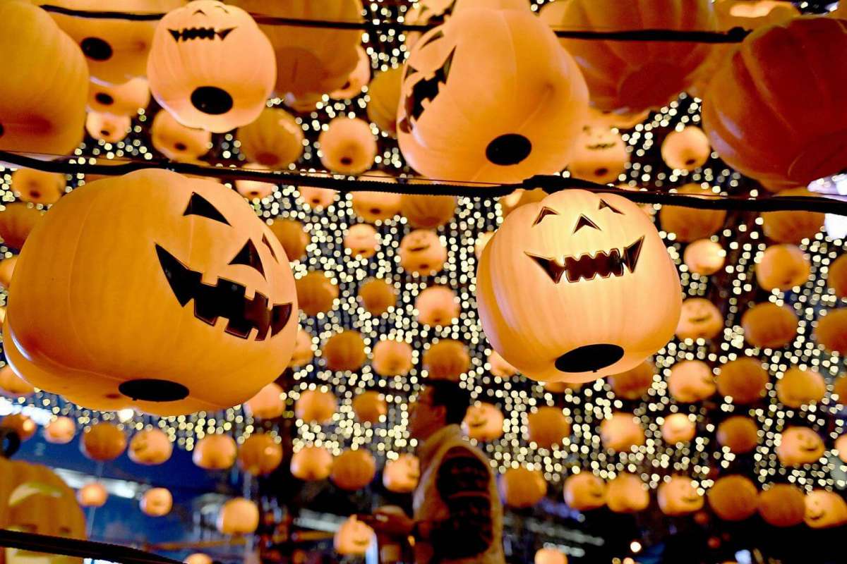 Đèn lồng hình quả bí đỏ phía trước một trung tâm mua sắm nhân dịp lễ hội Halloween tại thành phố Thẩm Dương, phía đông bắc tỉnh Liêu Ninh, Trung Quốc. Ảnh: AFP