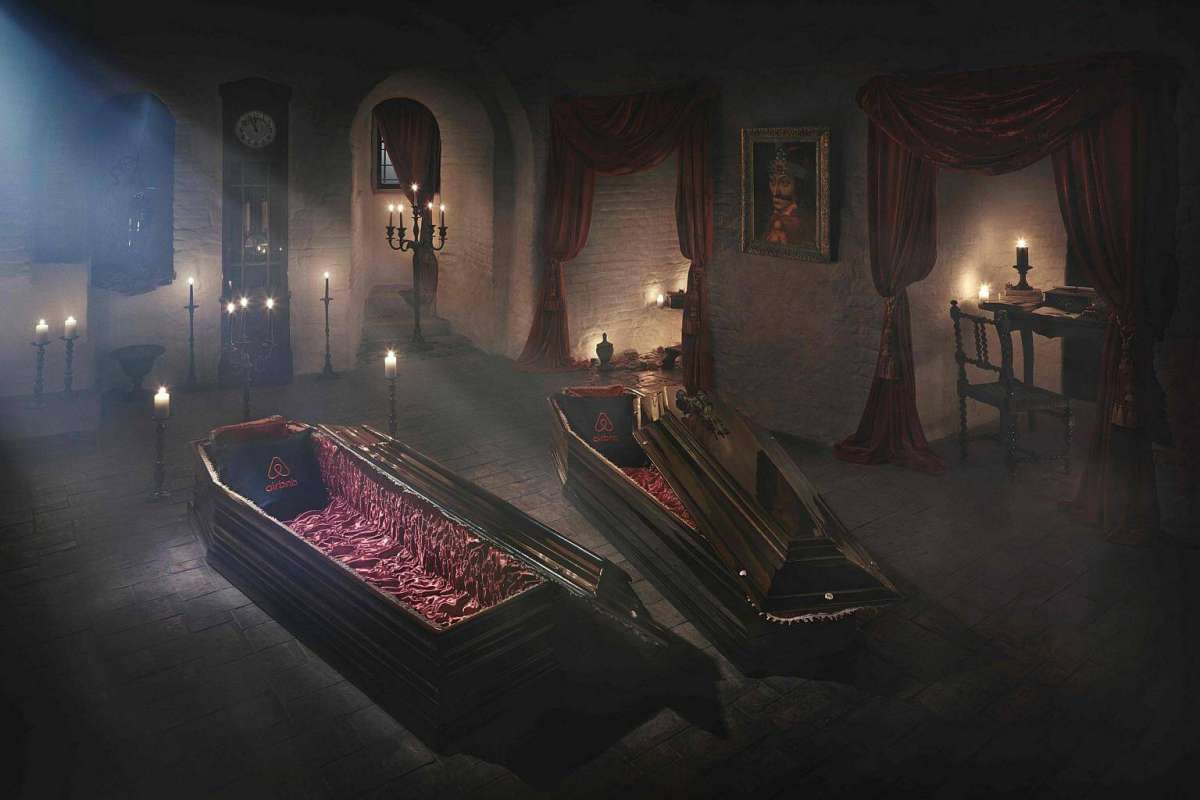 Ngủ trong ... quan tài tại lâu đài Bran ở Transylvania, Romania. Ảnh: AFP