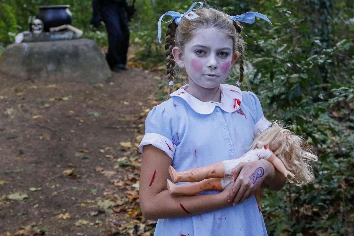 Học sinh hóa trang thành nhân vật đáng sợ theo chủ đề Halloween ở thành phố Avondale Estates, bang Georgia, Mỹ. Ảnh: EPA