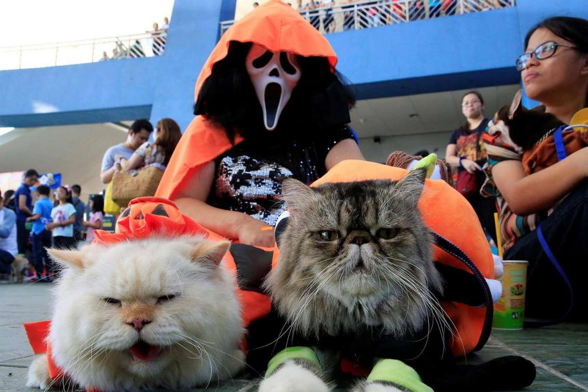 Không chỉ có chó, những chú mèo cũng là vật cưng được hóa trang tỉ mỉ trong lễ hội Halloween ở thành phố Pasay, Philippines. Ảnh: Reuters