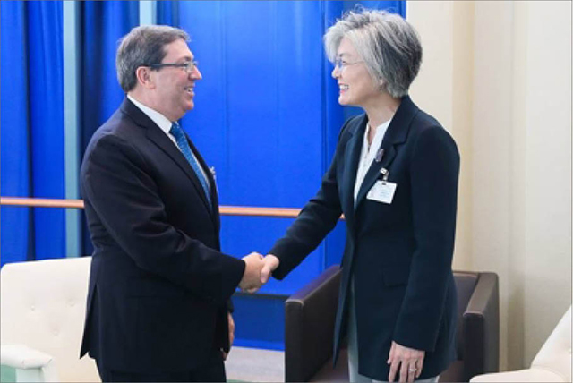 Ngoại trưởng Cuba và Hàn Quốc trong cuộc đàm phán ngày 27/9/2018. Ảnh: Yonhap
