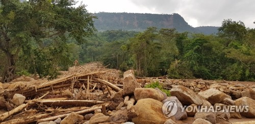 Một con đường dẫn đến khu vực bị ảnh hưởng bởi lũ quét do vụ vỡ đập ở Lào. Ảnh: Yonhap