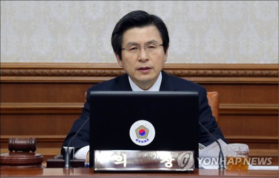 Quyền Tổng thống Hàn Quốc Hwang Kyo-ahn trong cuộc họp nội các ngày 10/3/2017. Ảnh: Yonhap
