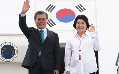 Tổng thống Hàn Quốc Moon Jae-in và phu nhân đến Đà Nẵng tham dự Hội nghị Cấp cao APEC. Ảnh: Yonhap