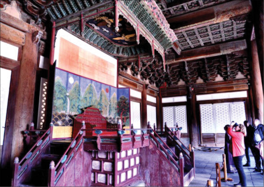 Du khách chụp hình trong đại sảnh Cung điện Changgyeong-gung. Ảnh: KOREA HERALD