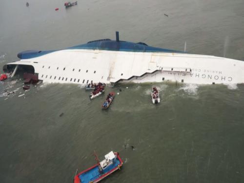 Chiếc phà chìm ngoài khơi bờ biển phía tây Hàn Quốc khi đang trên đường đến đảo nghỉ mát phía nam Jeju. Vụ tai nạn làm 304 người thiệt mạng, phần lớn là học sinh trung học. Đến nay, vẫn còn 9 nạn nhân mất tích.