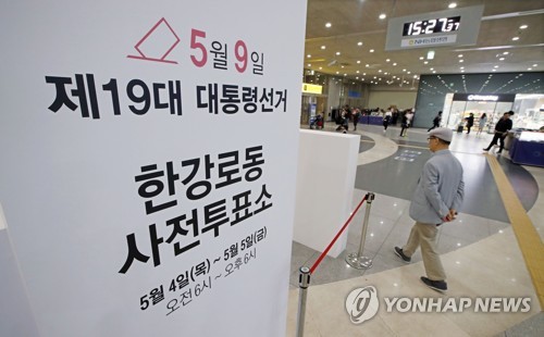 Một điểm bỏ phiếu được thiết lập tại ga Yongsan của Seoul vào ngày 2/5/2017, hai ngày trước khi cuộc bỏ phiếu sớm để bầu cử tổng thống bắt đầu. Ảnh: Yonhap