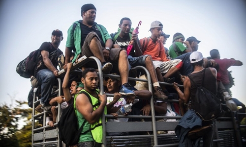 Đoàn di cư chen chúc nhau trên một chiếc xe tải ở Pijijiapan, nam Mexico ngày 26/10. Ảnh: AFP
