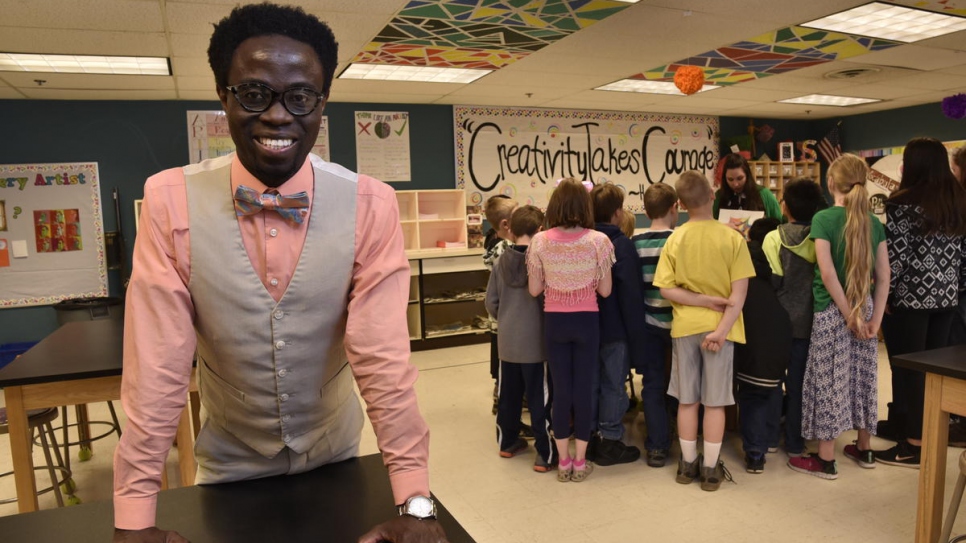 Ông Bertine Bahige, 38 tuổi, tại Trường tiểu học Raw leather ở Gillette, bang Utah, nơi ông làm hiệu trưởng. Ảnh: UNHCR