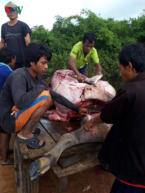 | Trâu bò chết vì bị lũ đã được người dân xẻ thịt ngay bên đường. |