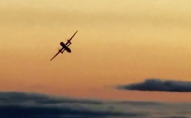 Ảnh chụp màn hình video quay lại cảnh máy bay Q400 bay trên bầu trời Washington sau khi bị đưa ra khỏi sân bay. Ảnh: Seattle Times