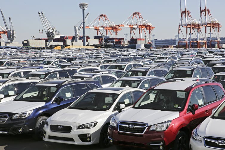 Ô tô đang chờ xuất khẩu tại thành phố Yokohama, Nhật Bản. Ảnh: EPA-EFE