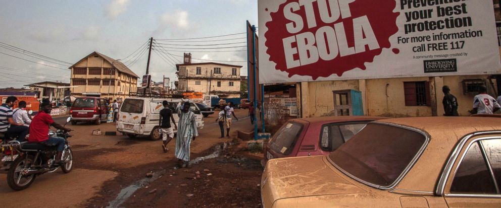 Banner về chiến dịch phòng chống Ebola ở thủ đô Freetown (Sierra Leone). Ảnh: ABC News