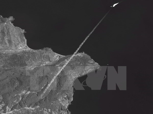 Một vệt sáng được cho là của tên lửa tầm trung Musudan-ri sau khi Triều Tiên phóng thử tên lửa này ngày 5/4/2009. (Nguồn: EPA/TTXVN)