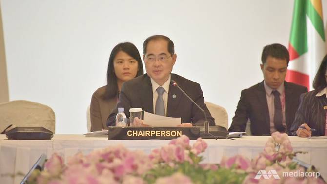 Bộ trưởng Bộ Thương mại và Công nghiệp Singapore Lim Hng Kiang phát biểu tại Hội nghị Cộng đồng Kinh tế ASEAN lần thứ 16. Ảnh: CNA