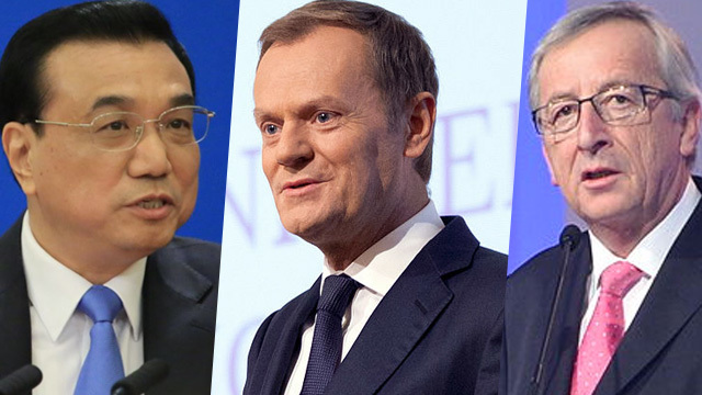 Thủ tướng Trung Quốc Lý Khắc Cường, Chủ tịch EU Donald Tusk và Chủ tịch EC Jean-Claude Juncker đẩy mạnh sự ủng hộ Hiệp định khí hậu Paris, bất chấp sự rút lui của Mỹ. Ảnh: Wikimedia