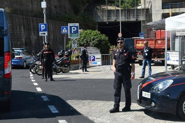 Cảnh sát Italy giám sát khu vực lối vào thị trấn Taormina trước thềm hội nghị. Ảnh: AFP