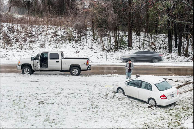 Một chiếc xe bị trượt khỏi đường đi do bão tuyết tại Charlotte, Bắc Carolina. Ảnh: AFP