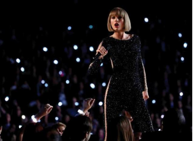 | Taylor Swift biểu diễn ca khúc “Out of the Woods” trong lễ trao giải Grammy 2016 . Ảnh: Reuters |