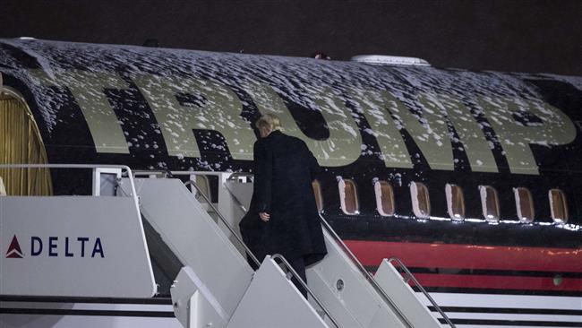 Tổng thống Mỹ đắc cử Donald Trump lên chuyên cơ riêng tại sân bay quốc tế Gerald Ford, thành phố Grand Rapids, bang Michigan, Mỹ. Ảnh: AFP